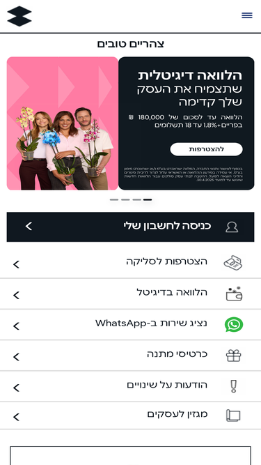 63%אתר העסקים של ישראכרט: מגוון פעולות נוחות לכל עסק דרך המחשב או האפליקציה. היכנסו עכשיו!