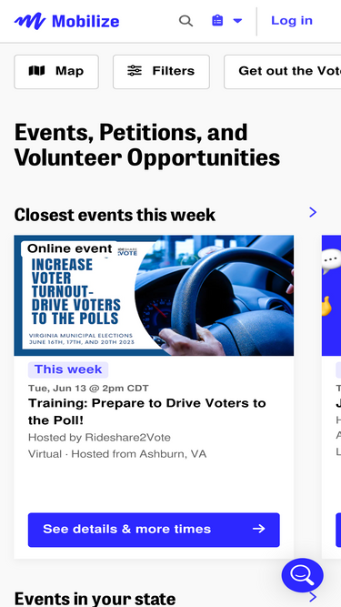 86%Create change in your community. Find events, petitions, volunteer opportunities, and fundraisers in your local area, organized by charities, campaigns, political organizations, grassroots groups, and other volunteers! Together, we'll help make the world more just, inclusive, and democratic.