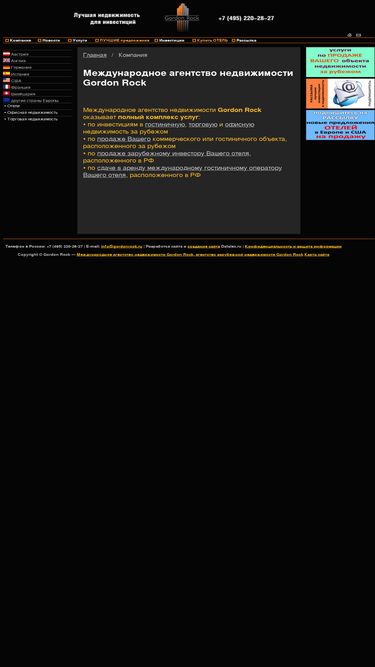 100%международное агентство недвижимости gordon rock оказывает полный комплекс услуг по инвестициям в гостиничную, коммерческую и доходную недвижимость. агентство зарубежной недвижимости gordon rock является официальным представителем ведущих зарубежных застройщиков.