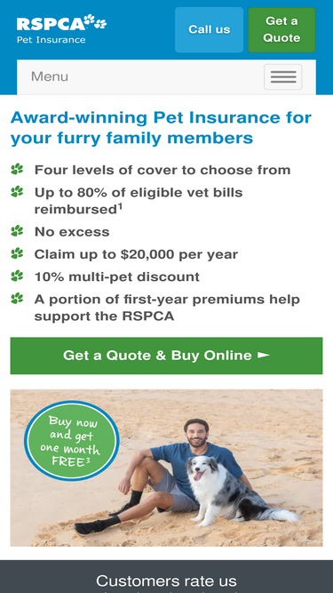 86%Receive a 10% multi-pet discount on your second and subsequent policy with RSPCA Pet Insurance. Read the full terms and conditions here.