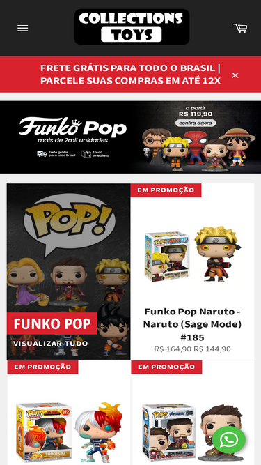 78%Produtos Colecionáveis Geek como Action Figures, Funko Pop, Labubu, Estatuetas, Pelúcias, Camisas Personalizadas entre outros.