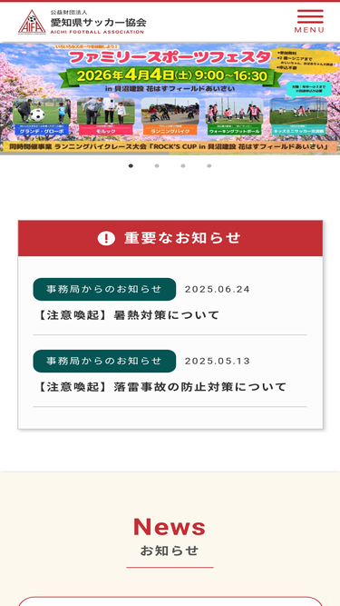 86%公益財団法人 愛知県サッカー協会のオフィシャルサイトです。愛知県のサッカーに関するお知らせや、大会・試合の情報を掲載しています。