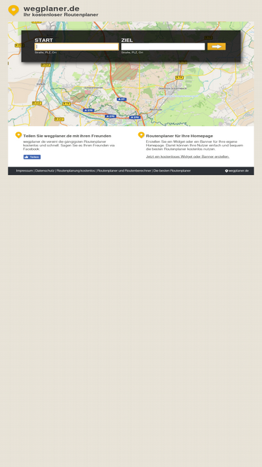 60%wegplaner.de vereint die besten routenplaner kostenlos. mit einer abfrage erreichen sie mehrere routenplaner dienste gleichzeitig. inkl. verkehrsmeldungen, fahrtzeitberechnung, benzinkosten uvm.