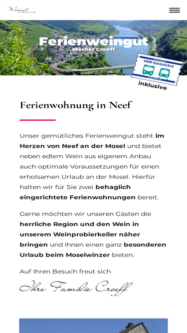 wir bieten mosel-wein ausschlieã�lich eigener erzeugung, gästezimmer und eine ferienwohnung in unserem wunderschön gelegenen weingut weyand. das weingut befindet sich in st. aldegund/mosel, zwischen cochem und zell, nur wenige meter vom moselufer entfernt.