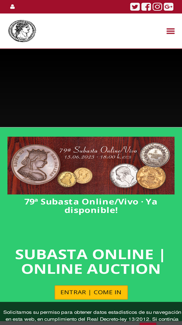 94%numismática y coleccionismo en general. subastas periódicas online y en vivo. compra y venta de colecciones numismáticas. tasaciones y expertizaciones. papel antiguo