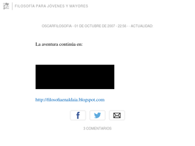 · HISTORIA DE LA FILOSOFÍA: - Salu2!Estás viendo materiales recopilados por Oscar Fernández Pita, profesor de filosofía del IES Llombai de Burriana, Castellón, durante el curso 2006/2007.oscar_fdez@hotmail.com Manda, por favor, tanto comentarios como lo que te parece que pudiera tener sitio en esta página. Quien la mantiene no se responsabiliza de las opiniones mantenidas en ella por terceras personas.Si los textos no van firmados es que no se conoce al autor.