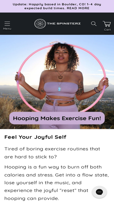 82%Great for beginners or advanced hoopers who want different sizes! You want to have fun, learn new tricks, and be happy and healthy, right? Well then, let me tell you EXACTLY why The Spinsterz helps you achieve all of this and more with the purchase of this or any of our other hoops. This hoop works for everyone! One of the best ways to become a well-rounded hooper is to always be adjusting to different sizes and weights. Your flow will improve, your creativity with the hoop will expand and you'll get better. The Quick Facts Hoop is made with 5/8" OD Polypro tubing You choose your color The hoop breaks down into 5 pieces It converts into 8 different sizes. Your hoop will come with instructions on how to easily assemble it to use different sizes. Sizes You Can Make 20" 22" 24" (can make two hoops this size, twins) 26" 28" 30" 32" 34" Hoop Size Configurations When you receive your hoop each section is labeled for each of putting different sizes together. You'll get a handy instruction sheet and you can also find the configurations below. 20" = 6+6+822" = 6+6+1024" = 6+8+10 (This is also the configuration for twin hoops)26" = 6+10+1028" = 8+10+1030" = 6+6+8+1032" = 6+6+10+1034" = 6+8+10+10