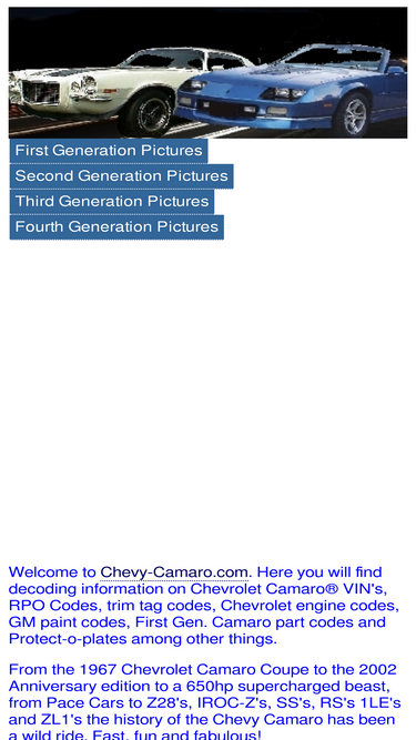 chevy camaro pictures and decoding information about chevy camaro vin's, rpo codes, trim tag, engine codes, gm paint codes and protect-o-plate.