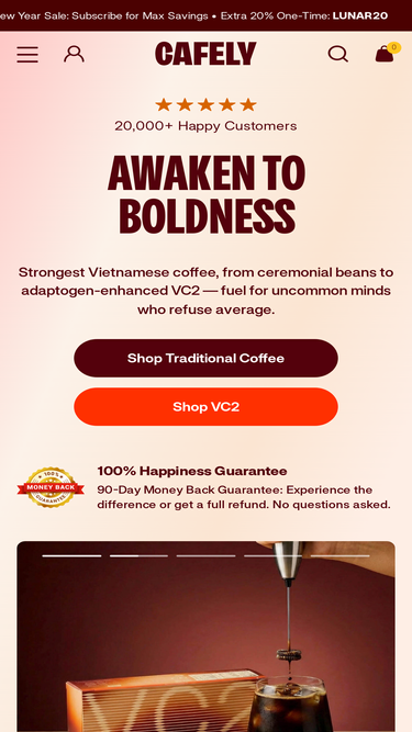 81%Fuel your day with Cafely's enhanced coffees, teas, energizing superfoods & drinks, and functional mushrooms. Elevate your daily routine with our expertly crafted products for a healthier, more vibrant lifestyle.