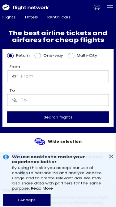 94%Welcome to Flight Network! Find our best cheap flight tickets, top destinations, and exclusive offers designed to make travel easier and worry free.