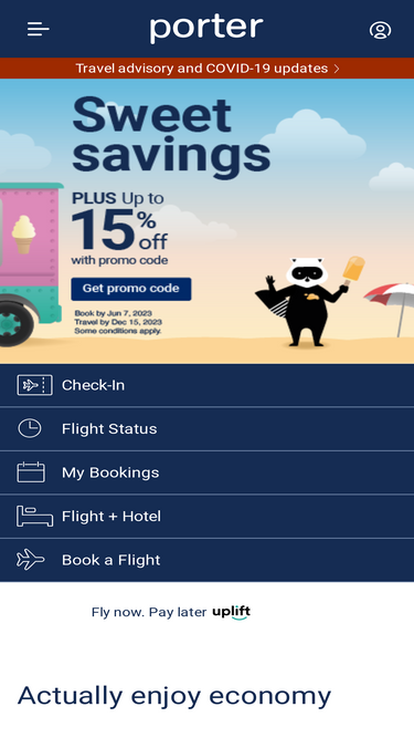 92%Book flights to destinations across North America and actually enjoy economy with free beer, wine and snacks when you fly with Porter Airlines.