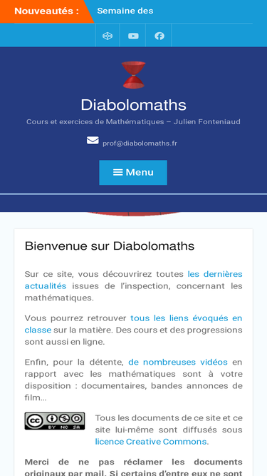 97%•••> ce site regroupe des leçons de capes de mathématiques, ainsi que des cours - exercices - devoirs de collège et lycée, des sujets et corrigés de diverses épreuves (capes externe, bac s, ...), des délires mathématiques et des cours informatiques (latex et maple).