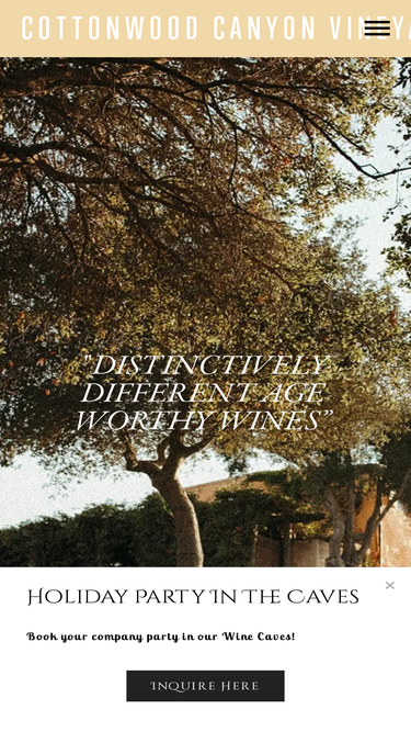 84%Cottonwood Canyon Vineyard & Winery is a small boutique winery in California specializing in hand-crafted Chardonnay, Pinot Noir and Syrah with a beautiful Wedding Venue located in the Santa Maria Valley!
