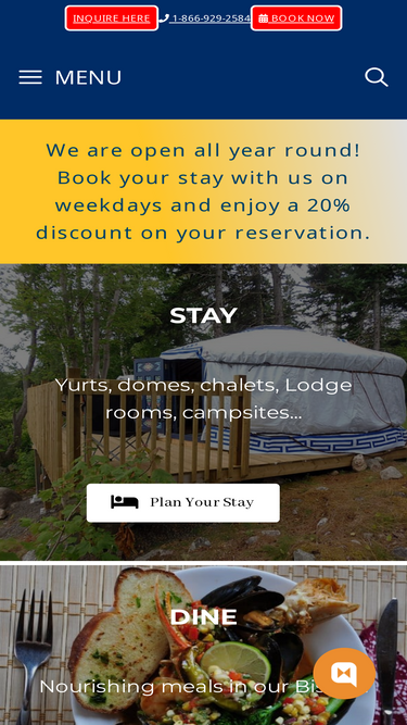 Cabot Shores is a wilderness resort offering unique lodgings like yurts, domes, cabins, lodge rooms on Cape Breton Island, near the Cabot Trail.