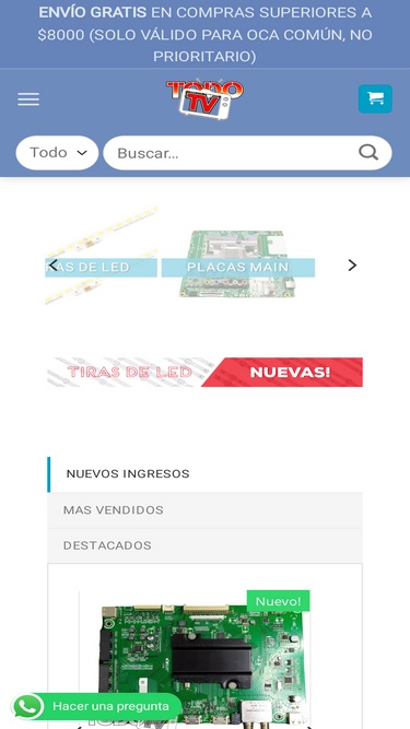 Placa probada y funcionando correctamente – retirada de aparato con pantalla rota las placas tcom no tienen Garantia ni cambio ya que la falla tambien puede ser el propio panel del tv, cambiar la placa tcom ante una falla de imagen es una prueba necesaria, no obstante que falle la imagen no significa que la falla sea si o si la tcom , puede ser una falla interna del mismo panel. Envios a domicilio por Oca a todo el pais (Argentina) Se aceptan tarjetas de credito – pago en efectivo – mercado pago – deposito bancario o transferencia Somos TodoTV Mar del Plata - Bs As - Argentina - Av Libertad 5464 (repuestos) Av Libertad 5498 (service) Hacemos Facturas A o B Para evitar posibles fraudes, nuestro unico telefono de contacto es el que aparece en esta web, nuestra unica direccion fisica son las mencionadas anteriormente, las cuentas de CBU o el pago por mercado pago solo apareceran al finalizar la compra por nuestra tienda . Puede tambien buscarnos en Google (todo tv mar del plata) y ver nuestras reseñas de clientes reales y fotos de nuestro local . Cada foto y publicacion son de nuestra autoria con marca de agua de nuestro logo. En la pagina ppal puede ver fotos de nuestro local y capturas de clientes nuestros reales. NO confie en paginas “parecidas” o logos parecidos . Muchas gracias