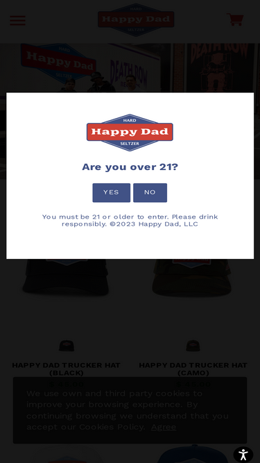 Twill trucker hat with Happy Dad logo front patch Adjustable back plastic snap