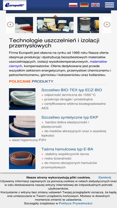 99%w europolit zajmujemy się produkcją uszczelnień i izolacji wysokotemperaturowych dla wielu sektorów przemysłu. dowiedz się więcej o naszej firmie na stronie!