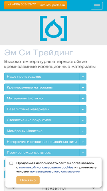 100%Высокотемпературные огнеупорные термостойкие изоляционные материалы Superfelt. Кремнеземные маты, ткани, шнуры и сетки. Строительные мембраны Изолтекс