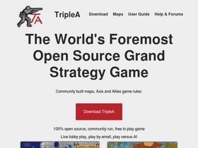 98%TripleA is a free open source turn based grand strategy game engine with play similar to Axis & Allies and Risk. Over a hundred different maps created by the community covering a wide variety of scenarios (such as WW1, WW2 and various science fiction and fantasy worlds) are available for download. TripleA supports single player vs AI, hot-seat, play by email and forum, direct online play, and a hosted lobby for live online play with other community members.