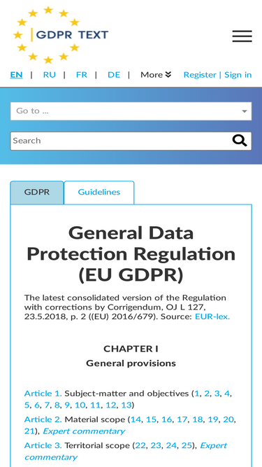 72%GDPR with relevant recitals, article-by-article commentary, guidelines, case law and ISO 27701 requirements. Text of GDPR regulation in 30+ languages