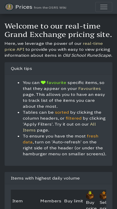 Displaying accurate real-time pricing information about items in Old School RuneScape, powered by RuneLite users.