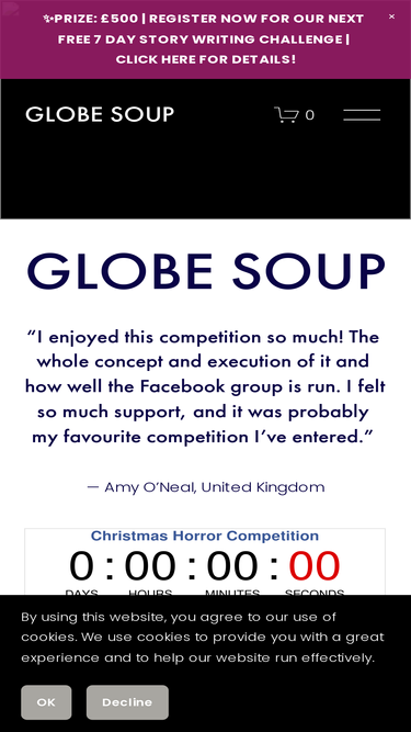 80%Write a short story in a week. Get feedback on your writing and compete for a £500 prize. These challenges take place throughout the year.