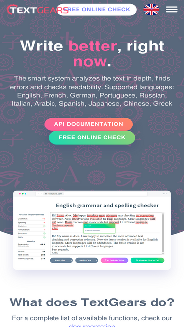 Is your writing good enough? GrammarCheck's free online grammar checker not only checks grammar, but also spelling, punctuation, and style.