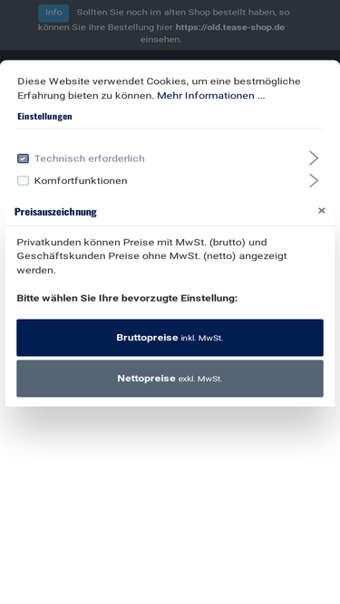 73%Tease Shop.de: Beschaffung - Einfach. Ehrlich. Ihr Onlineshop für B2C und B2B mit über einer Million Produkten.