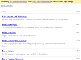 74%We're here to help each other with issues and to make Brave, and the Internet, better.