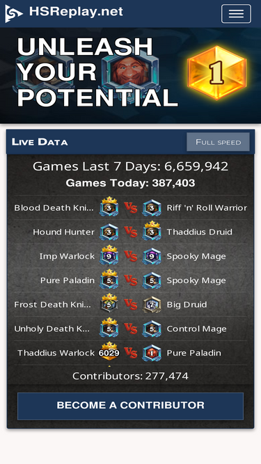 100%Watch and share Hearthstone replays directly from your web browser. Explore advanced statistics about decks and cards based on millions of games per week.