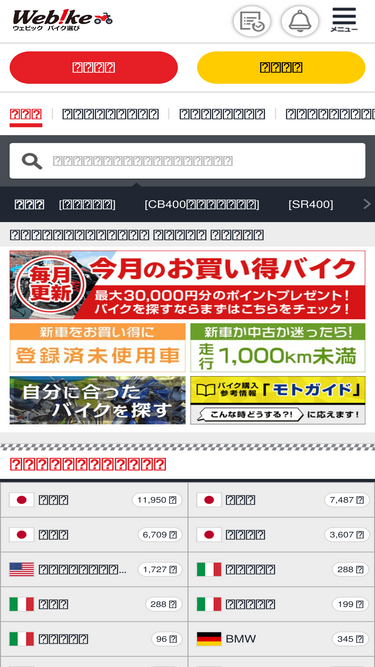 中古車・新車探しならバイクブロス。全国90000台以上の新車・中古バイクの中から、お探しのバイクを検索できます!気になるバイクにはネットで簡単お見積り依頼!お近くのバイクショップも都道府県別に探せて、バイク選びのコツも掲載中!中古バイクや新車の購入に必要な情報はバイクブロスで!
