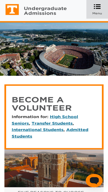 Start your application for admission to Tennessee’s top public university, where you’ll have countless opportunities and community support along the way.