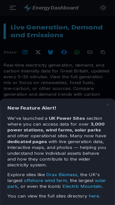 65%Live and historical GB electricity generation & demand data, carbon emissions and UK generation sites mapping with an API subscription service.