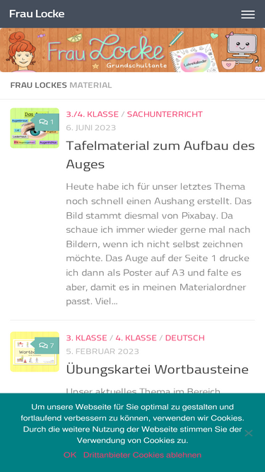 88%“Wo finde ich das Material?” www.fraulocke-grundschultante.de (Es gibt eine Suchfunktion und eine sehr aufgeräumte Übersicht oben unter dem Reiter “Material”. ) “Hast du Thema xy schonmal gemacht?” Ja, meist habe ich das Thema schonmal gemacht. Trotzdem versende ich keine Unterrichtsmaterialien oder gar Sequenzen. Die Sachen, die ich als teilenswert empfinde, sind meist eh schon auf dem Frau Locke...