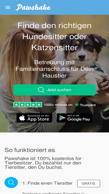 78%Finde einen erfahrenen 5-Sterne-Haustiersitter bei Pawshake. Sich für einen Haustiersitter zu entscheiden bedeutet, dass Dein Haustier von einem liebevollen Tiersitter in einer liebevollen häuslichen Umgebung versorgt wird. Das ist in der Regel eine viel bequemere Alternative zu einem Hundehotel oder einer Katzenpension. Wenn Du über Pawshake buchst und bezahlst, wird Deine Zahlung sicher verwahrt, bis die Buchung beendet ist. Du bist auch durch die Pawshake-Garantie abgedeckt, die eine Tierarztkostendeckung und vieles mehr enthält.