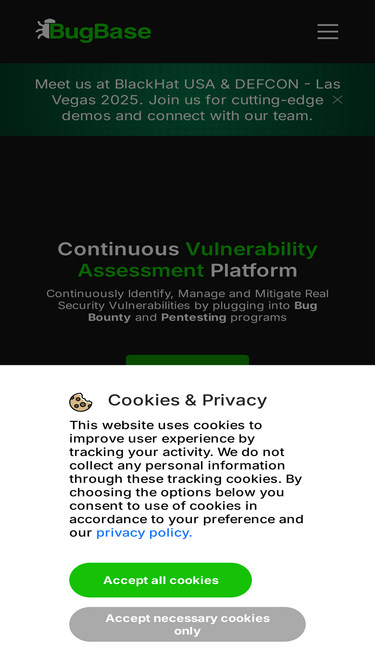 95%discover, manage, and proactively address vulnerabilities with bugbase's comprehensive suite of services. our offerings include managed bug bounties, penetration testing as a service (ptaas), automated scanning, and vdp solutions. enhance your security posture today.
