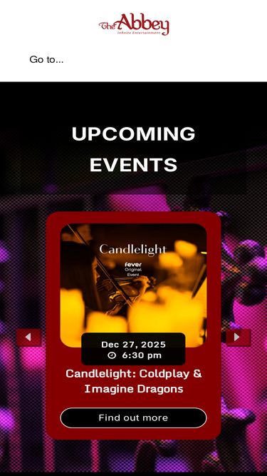 UPCOMING EVENTS BOOK YOUR EVENT TODAY HAPPENING AT THE ABBEY unlimited entertainment Committed to broadening the cultural offerings in downtown Orlando, The Abbey was cleverly conceived as the ideal mixed-use venue to deliver exciting and diverse live entertainment options. Situated on the