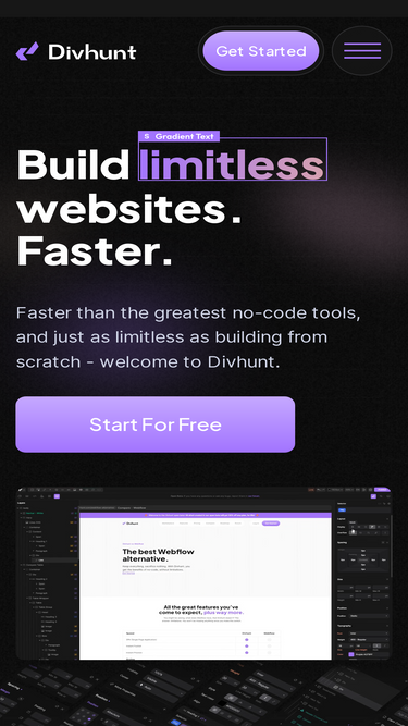 82%Visual website builder platform that combines no-code simplicity with powerful developer features. Create high-performance websites without limitations.