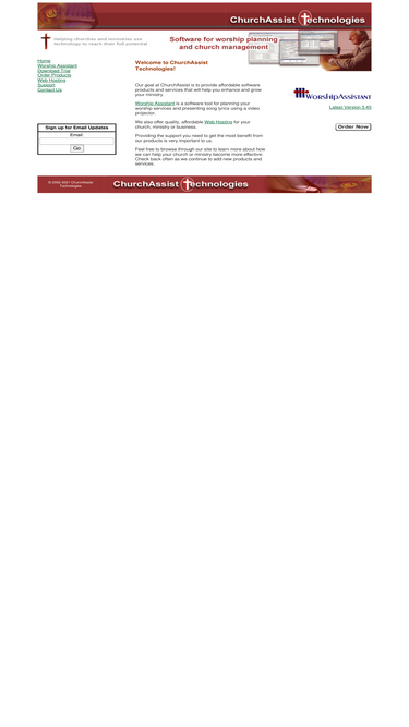 83%software for worship planning and church management. worship assistant was designed to assist the church worship leader keep track of worship songs, plan worship services, present song lyrics using a video projector, and manage worship teams. ministry assistant is church management software especially geared toward organizing small group ministry. we also feature web hosting and domain registration for churches, ministries, and businesses.