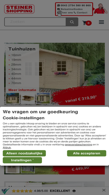 96%steiner shopping - uw betrouwbare partner voor tuinhuizen, kassen, sauna's, houtkachels, gereedschap, machines, pelletkachels, speelhuisjes, hout in de tuin, tuingereedschap en nog veel meer.