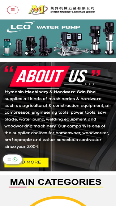 67%Mymesin Machinery & Hardware Sdn Bhd supplies all kinds of machineries & hardware such as agricultural & construction equipment, air compressor, engineering tools, power tools, saw blade, water pump, welding equipment and woodworking machinery.