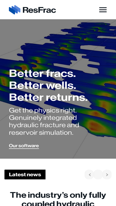 85%Better fracs. Better wells. Better returns. ResFrac is the oil and gas industry's only fully coupled fracturing and reservoir simulation software.