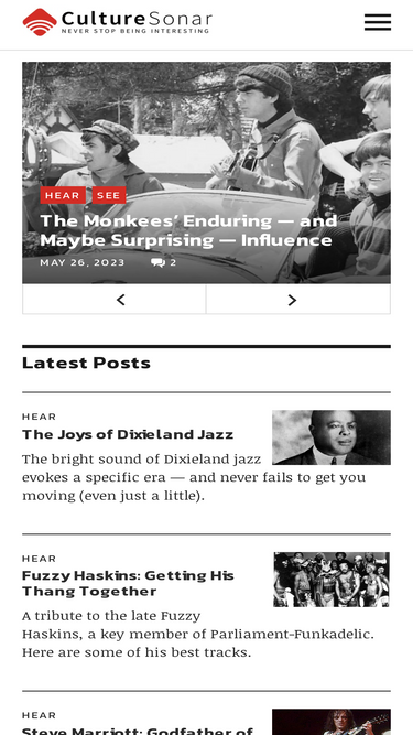 87%Do you have a soundtrack to your life? Do your friends ask you for advice on cool things to see, hear and do? Well, you're in the right place. Welcome to CultureSonar.