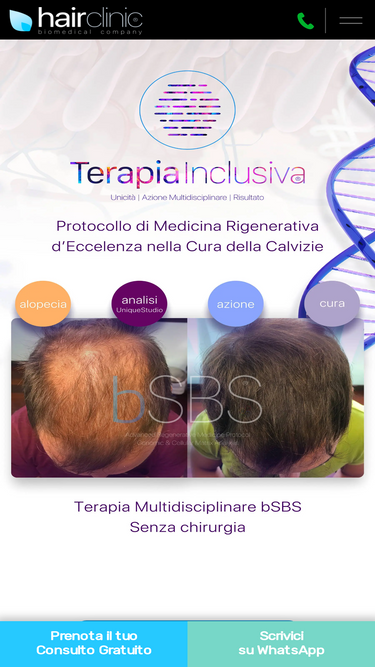 100%L'Analisi UniqueStudio è la più completa nella cura della Calvizie. E' parte del Protocollo bSBS ed è eseguita nel giorno della Terapia.