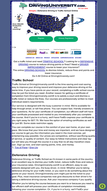 92%traffic school, driving university, offers courses for defensive driving through its online driving school. save time and money with traffic school from drivinguniversity.com