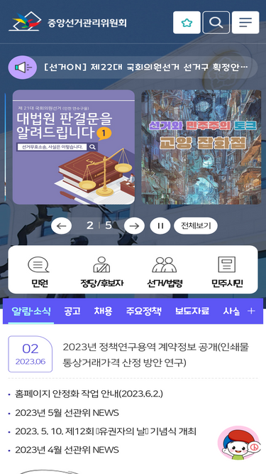 100%이 페이지는 중앙선거관리위원회 대표 홈페이지 입니다