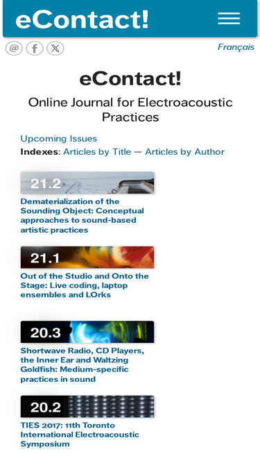 41%the cec’s online journal for electroacoustic practices is freely available to the public. four thematic issues per year since 1998, with a/v support files.