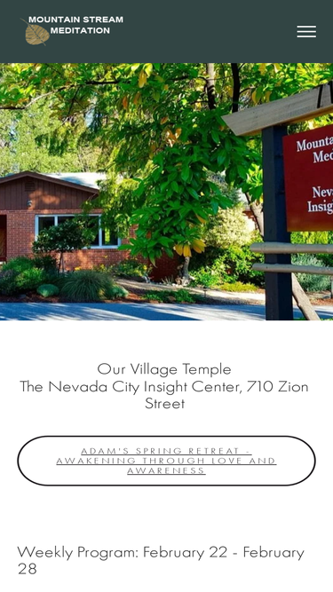 91%Mountain Stream Meditation is an Insight Meditation community serving as a resource for Buddhism in the Sierra Foothills of Northern California.
