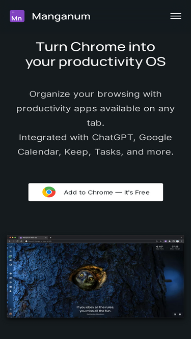 61%Manganum is the #1 alternative to FVD Speed Dial extension that offers more features and a stunning modern design. Install it and get a calendar, translator, notes, tasks, and more.