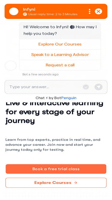 100%Get ready to power up your career with infyni's certified live online courses! Choose from a broad selection of courses and discover your full potential. Join our community of learners today!